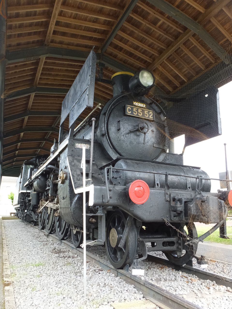 その駅を出て左側に行くとC55型のSLが保存展示されていて、資料館の建物、石造りの小屋、そして食事どころと土産販売の観光SL会館があります。