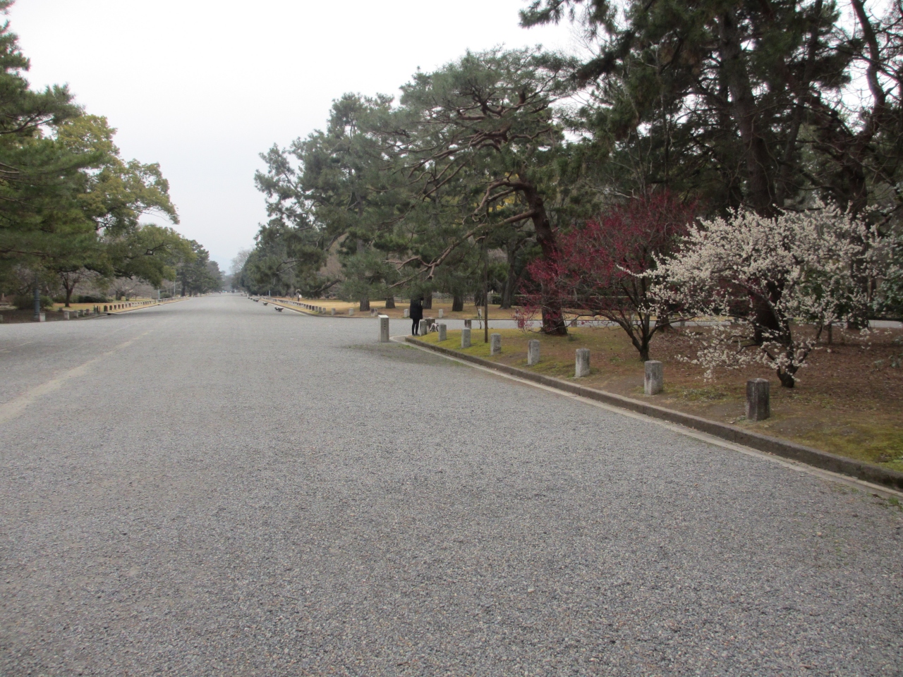 京都御所を囲むようにして造られている、日本に3つしかない国民公園です。かつては200軒近くの屋敷があったそうですが、今は砂利が敷き詰められた広い道と、芝や草木が植えられた憩いの場になっています。京都御所、仙洞御所を見学する際に通りましたが、朝早かったこともあり、砂利道と御所の塀がよくマッチし、静かで趣があり落ち着いたたたずまいで心が洗われる気持ちになりました。近くに住んでいれば、毎日の散歩に訪れたい場所です。見どころも多く、桜や紅葉の時期はとりわけ美しいようなので、再度訪れたいと思いました。
