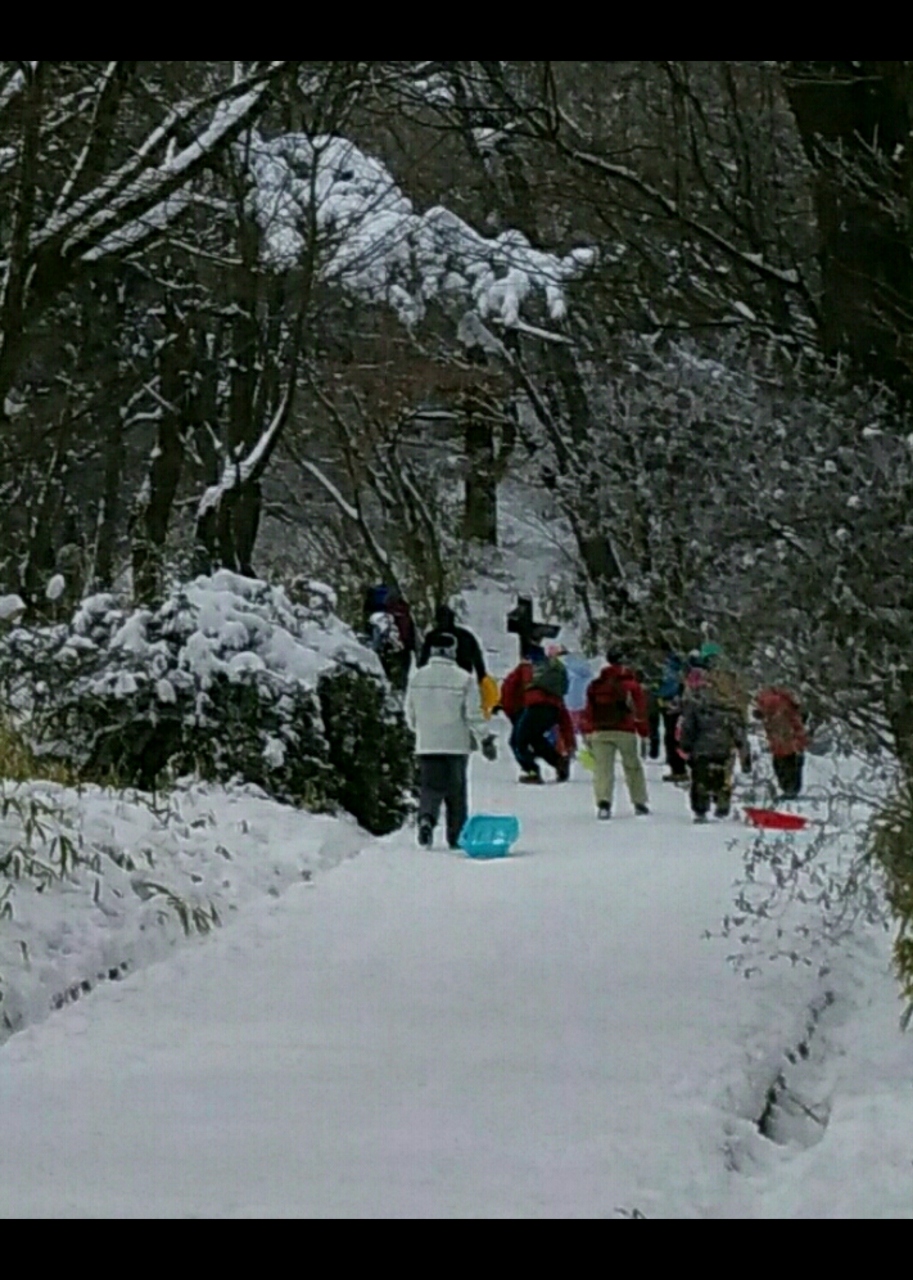 2月中旬に山頂に上りました。ロープウェイ乗り場までは道の端に雪が残っている程度でしたが、山頂は真っ白でテンションがあがりました。子供連れの家族が沢山きていて、ソリ遊びで楽しんでいました。