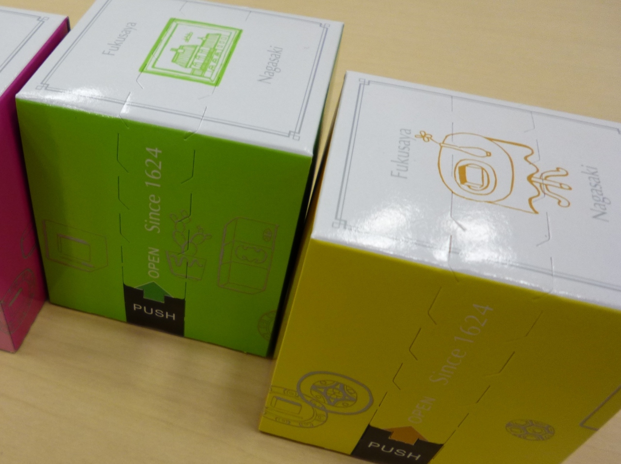 福砂屋と言えば長崎の人気カステラ店ですが、最近は「キューブカステラ」というとても可愛いパッケージの小型サイズのカステラを販売しています。
