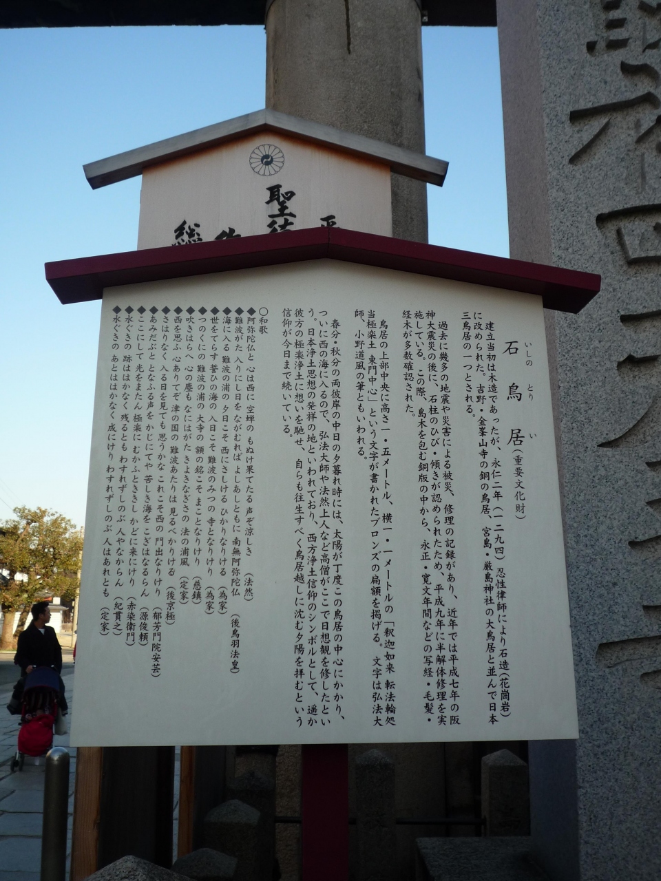 重要文化財に指定されている石鳥居 お寺である四天王寺なのに鳥居があるのか?