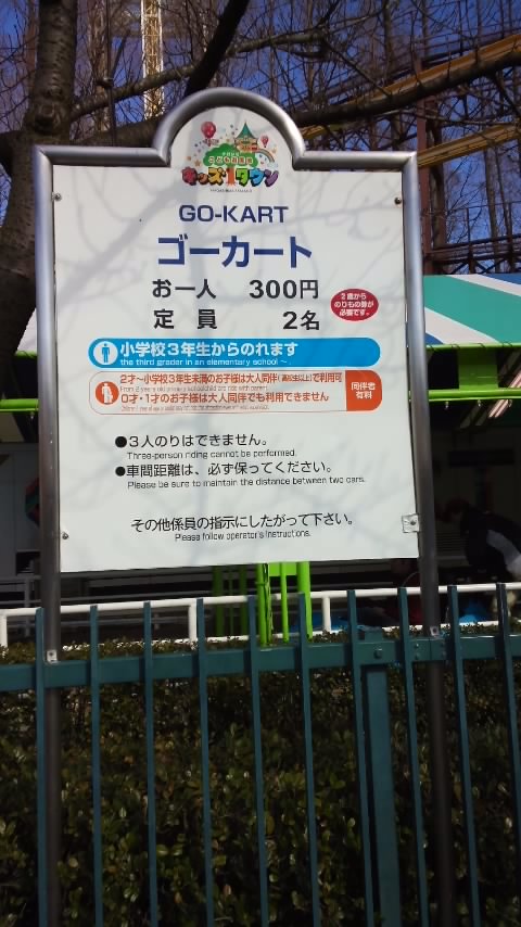 長島のゴーカートは距離も結構あるので大人にも人気です。他は空いていましたがゴーカートだけは並んで乗りました。幼児は大人同伴なら乗れますから挑戦しました。運転したがるお孫ちゃんに諦める様に、スタッフに子供が運転したらダメですか?と聞くといいえ大丈夫と返事。当然、ハンドル回し過ぎて衝突ばかりでした。