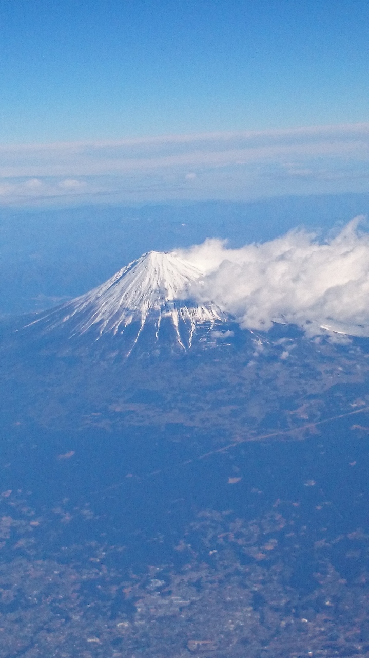 東京出張の帰りのフライトで見ることができました。飛行機から見えたのは初めてで、ちょっと嬉しかったです。もうちょい雲がずれてくれたら、もっとキレイだったのに、残念です。また機会があったら見たいなと思います。