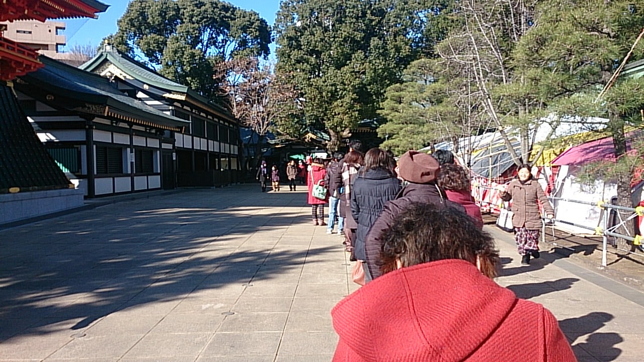 昨年のお札を返し、新しいお札を購入するために穴八幡宮へ。1月も半ばのため思っていたほど参拝する人はおらず、良かった良かったと裏へ回ればお札を求める人の行列が。