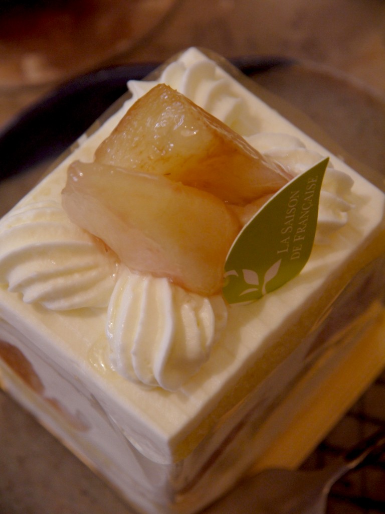 白桃は、旬の岡山産の「清水白桃」を使っているという。販売期間が1週間ちょっとと短いので、ケーキに使える程の量をどうやって確保したのかと思う。