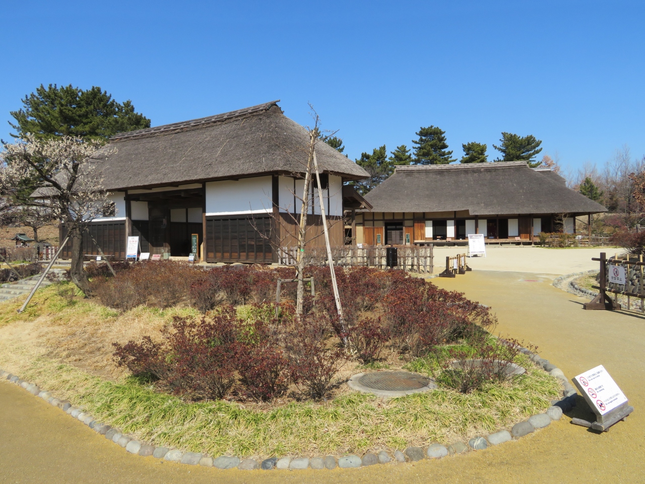 これびの里にある農家エリアには狛江市から移築した旧石井家住宅があり、建物や蔵を見ることが出来ます、建物内にも入れました、行った時は2月でしたのでお雛様が展示してありました、歴史ある建物を見て楽しみました。