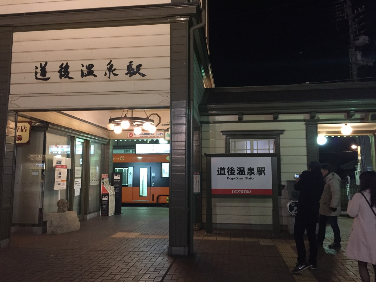 道後温泉本館から商店街を抜けたところにあるとてもレトロな雰囲気のある駅です。駅前広場には坊ちゃん列車も展示してあり沢山の人が写真をとってました。お昼よりも夜がきれいです。終着駅なので引き上げ線で中々見れない電車の方向転換が見れて楽しいです。