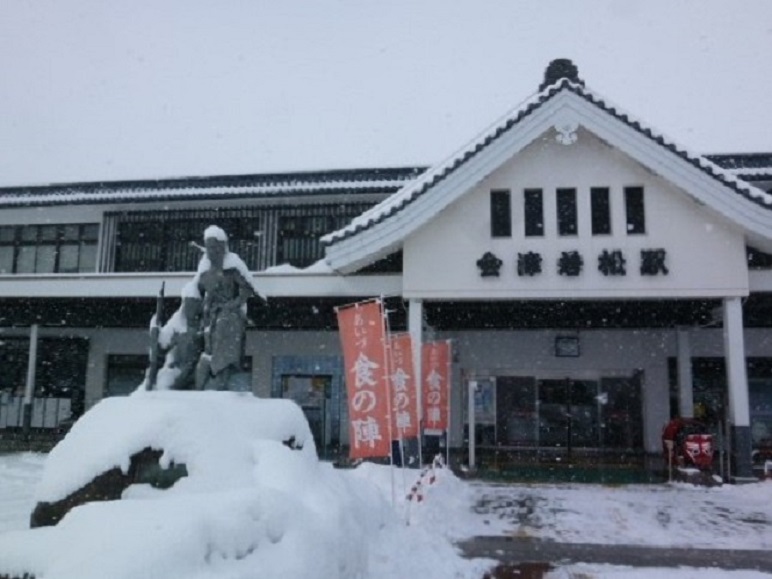 「白虎隊士の像」はバスロータリーがある会津駅前にあります。高速バスなどほとんどのバスがここに停車しますので是非立ち寄ってください。