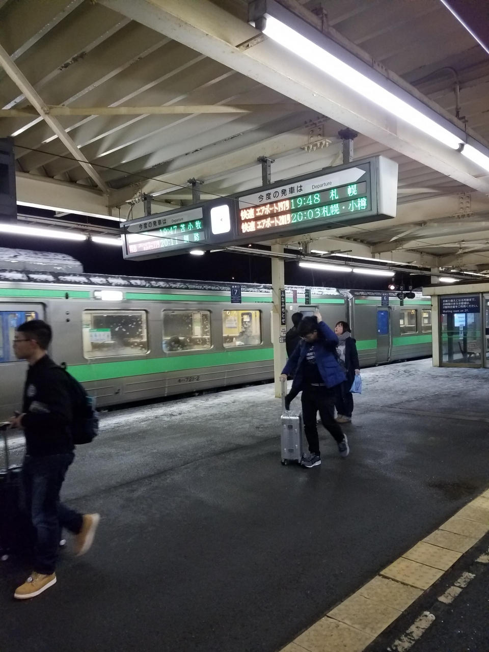 快速エアポートは、新千歳空港と札幌、小樽間を結ぶJR北海道の大動脈です。くす。本数が多く15分毎、空港から札幌まで35分なのでとても便利です。6両編成ですが、空港利用に加え沿線住民の足にもなっているのでいつも混んで座るのは難しいです。