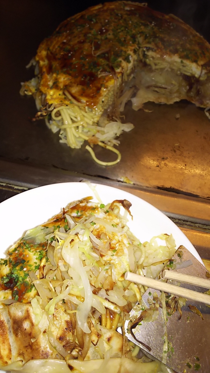 お好み村の中にあって、パルコも近く人も多いので非常に混んでいます。タイミングが良かったらすぐ入れます。この時はお昼前で1回転していたと思います。待たずに入れました。そばとうどんがありますが、そばがぱりぱりするところもあっておすすめです。八昌はいろんなところにお店があって、値段も多少違いますが、ここは場所柄少々高めかと思います。でも、やっぱり美味しいです。あと、ヘラで食べづらくしていたらお店の方がアドバイスもしてくれて助かりました。鉄板から食べるのが醍醐味です。