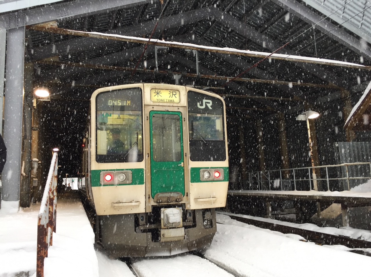 米沢の外れ、福島県と山形県の県境に近い無人駅です。