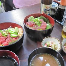 泊港から歩いて10分程の所の魚市場の一角にあります。お昼を過ぎていたので、すぐに席につけました。まぐろ丼の種類がいろいろとあります。ご飯も酢飯か白米か選べ、お味噌汁も3種類から選べます。ボリューミーで新鮮なまぐろ丼がお得に楽しめます。
