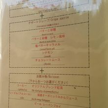 ¥2000コースはガレット、クレープ、ドリンクをチョイスするようになっていた。