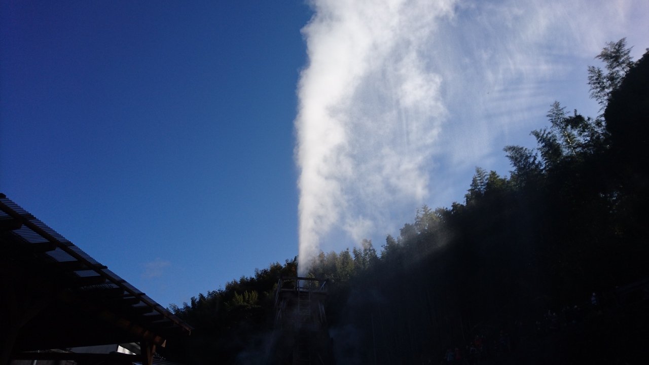 高く上がった温泉は風にのり、周りに飛び散るため、けっこう濡れます。