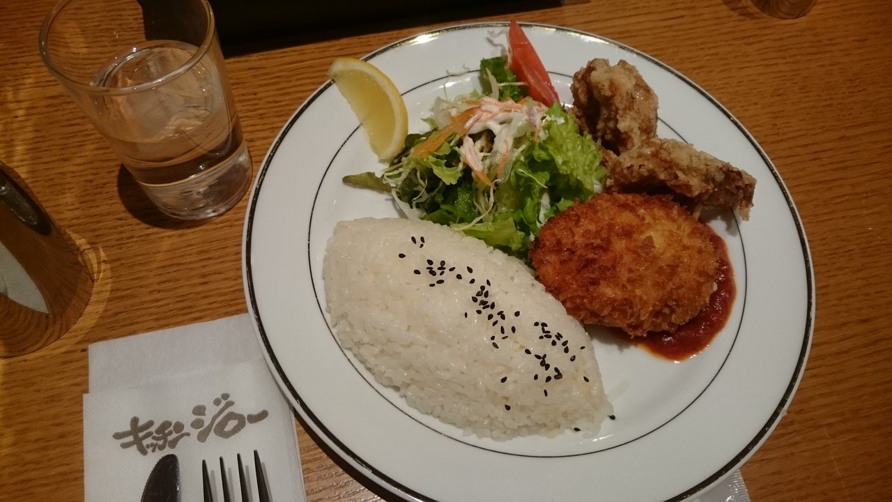 お得なディナーセットがいくつかあったので食べたかった帆立ミルクコロッケが入ったカラコロプレートを注文。