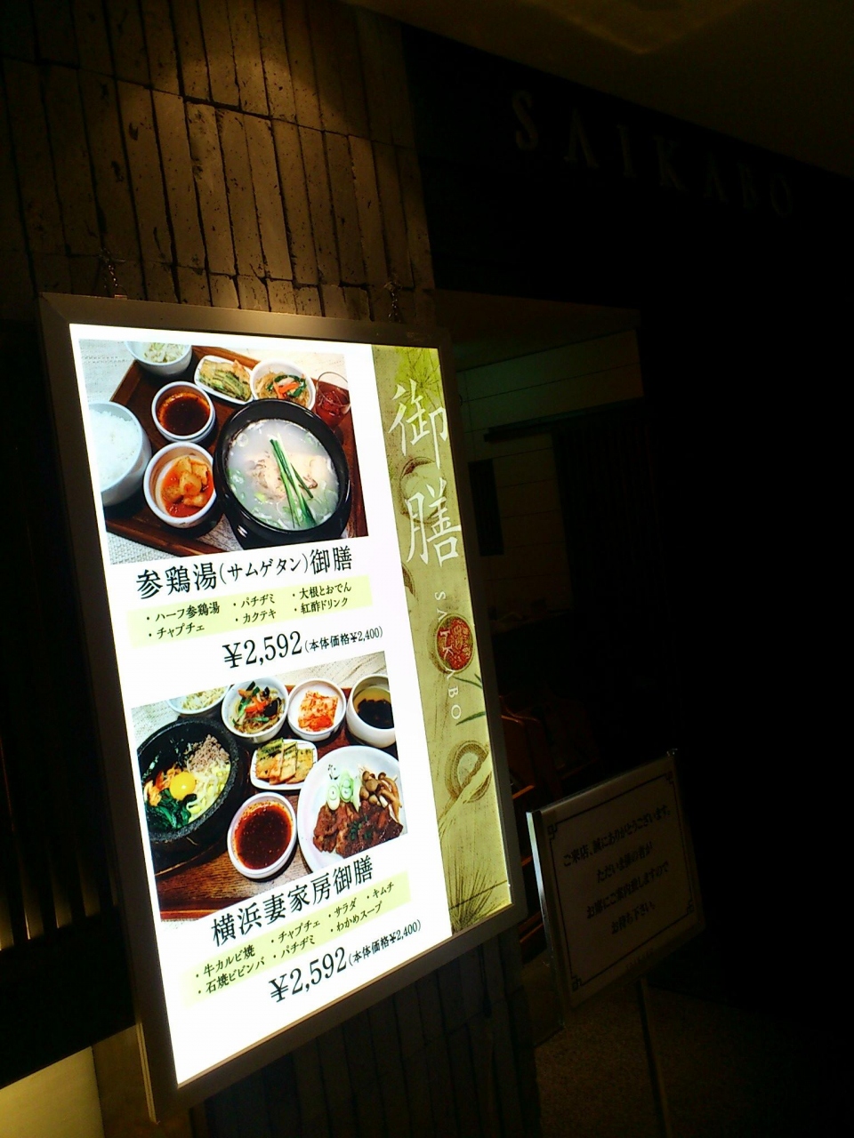横浜高島屋の8階のレストラン街の中にある韓国料理のお店です。レストラン街で夕食を食べるお店を探していて、お店の前にサムゲタンがあったので入ってみました。以前、韓国で食べたサムゲタンが美味し買ったので、それを思い出しました。高島屋にあるぐらいなので、かなり高級なつくりのお店です。サムゲタン御膳を注文しましたが、少し予想とは違ったものでした。仕方ありませんが、やはり本場にはかないません。