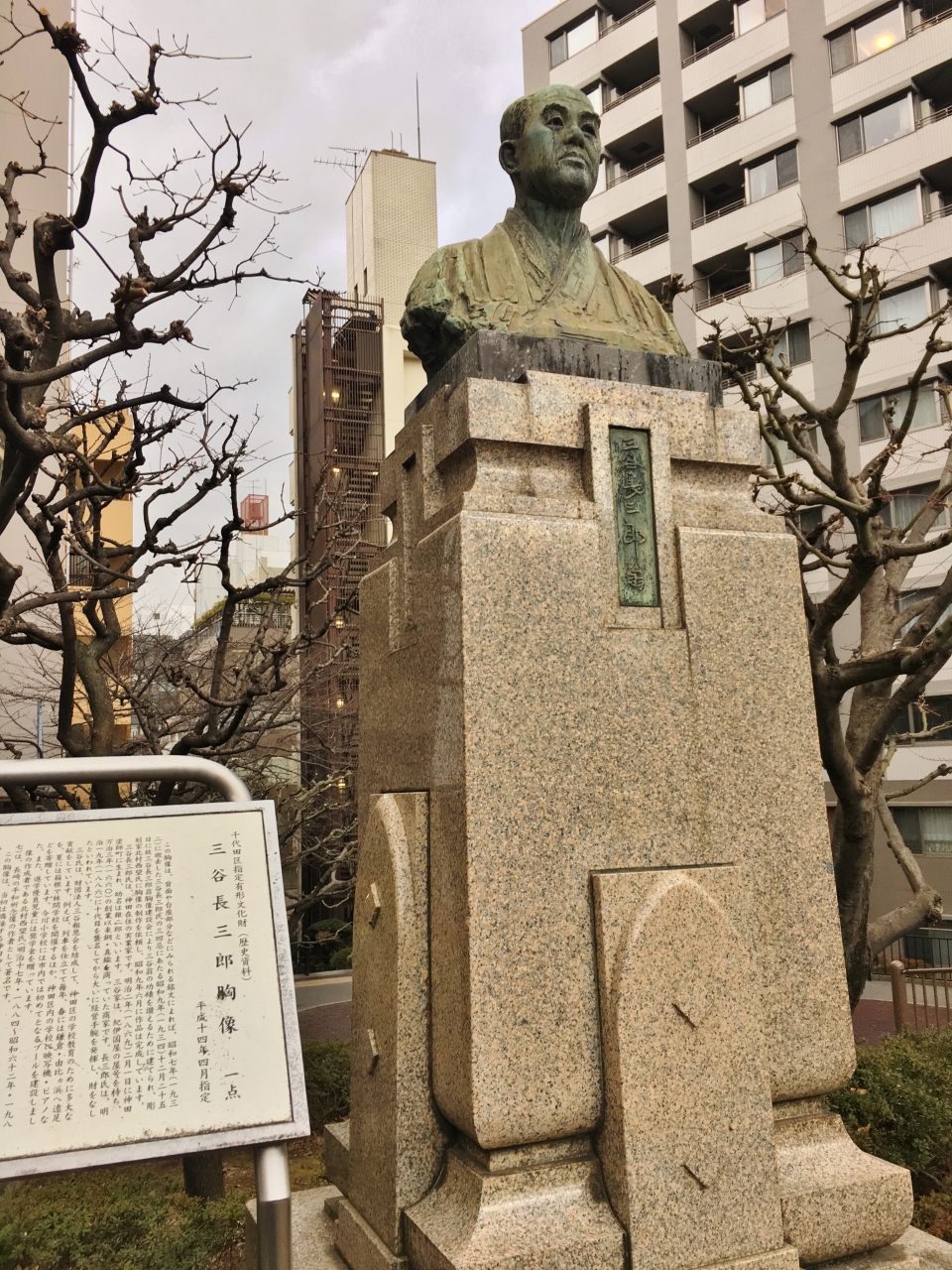 湯島天神から御茶ノ水へ向かって歩く途中、神田明神へ立ち寄ろうと思い明神の西側から入ろうとしたら小さな公園があって、こちらの胸像が立っていました。