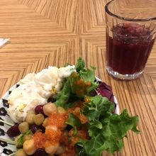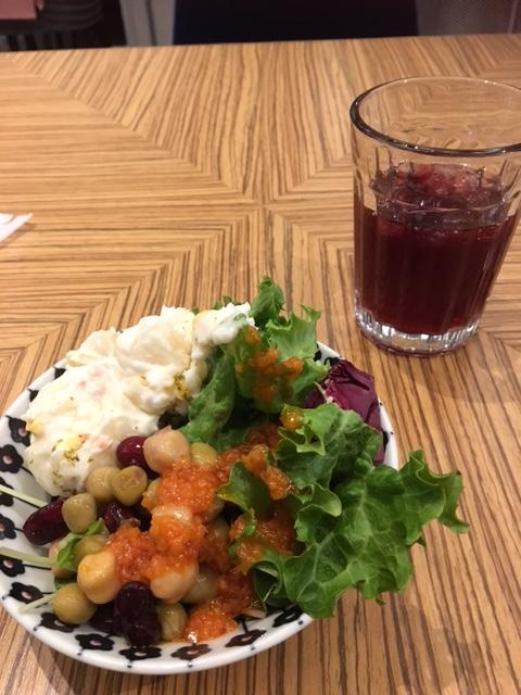 平日のランチメニューはカレーやパスタ、ハンバーグ等が1,000円~1,200円で丸の内の標準的な価格ですが、サラダバーとドリンクバーがあるので、お得に思えました。