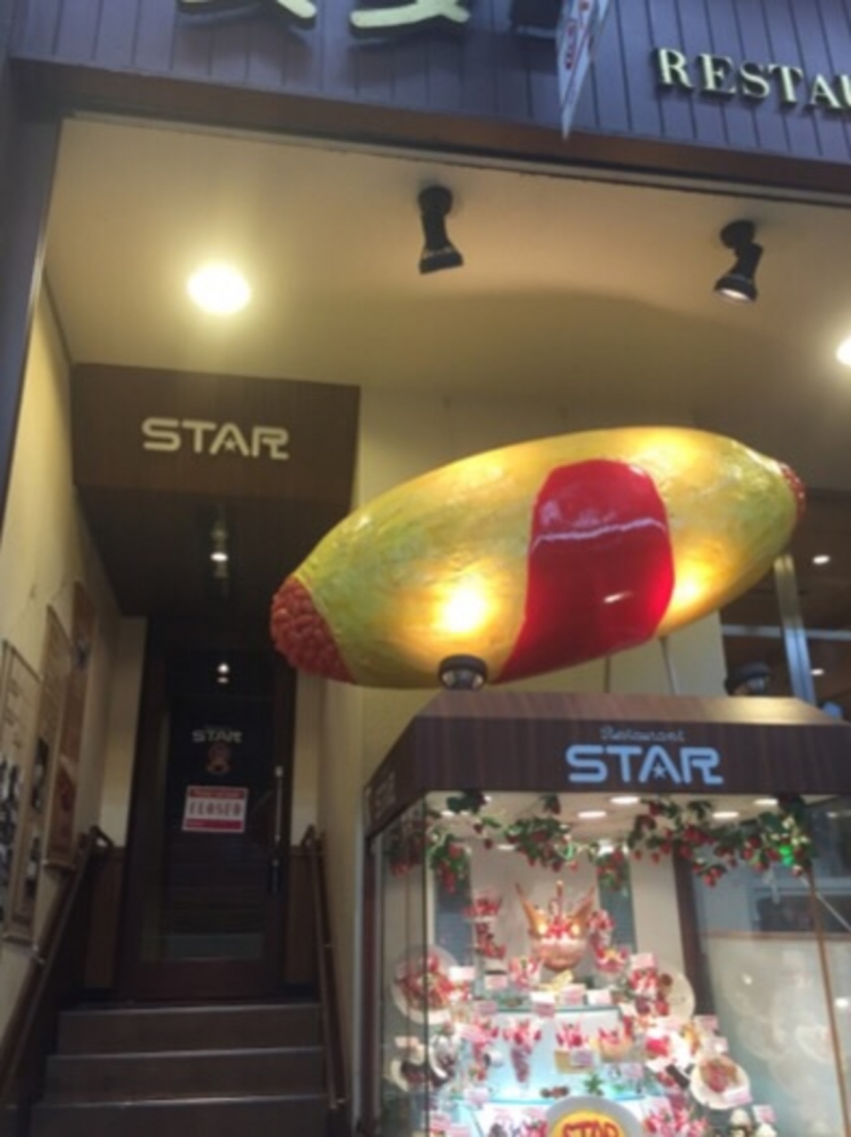 京極商店街にあるでっかいオムレツの看板のファミリーレストランです。看板はインパクトがあり、大阪に迷い込んだ感覚になります。