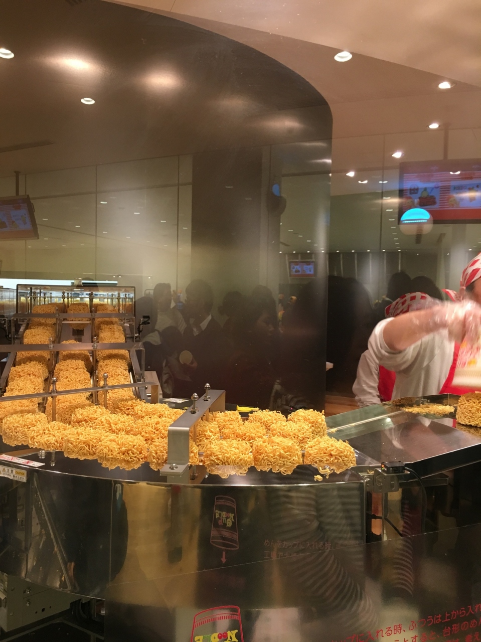 マイカップヌードルファクトリーではオリジナルのカップヌードルが作れました。マイカップは300円で購入。カップに自由にサインペンでデザインします。味とトッピングも数種類から選べます。パッキングの工程などもなかなか面白く見ることができます。日曜の午後の訪問でしたので混んでいました。デザインを描く席に着くまでに10分くらい並び、製造過程のところで15分ほど並びました。