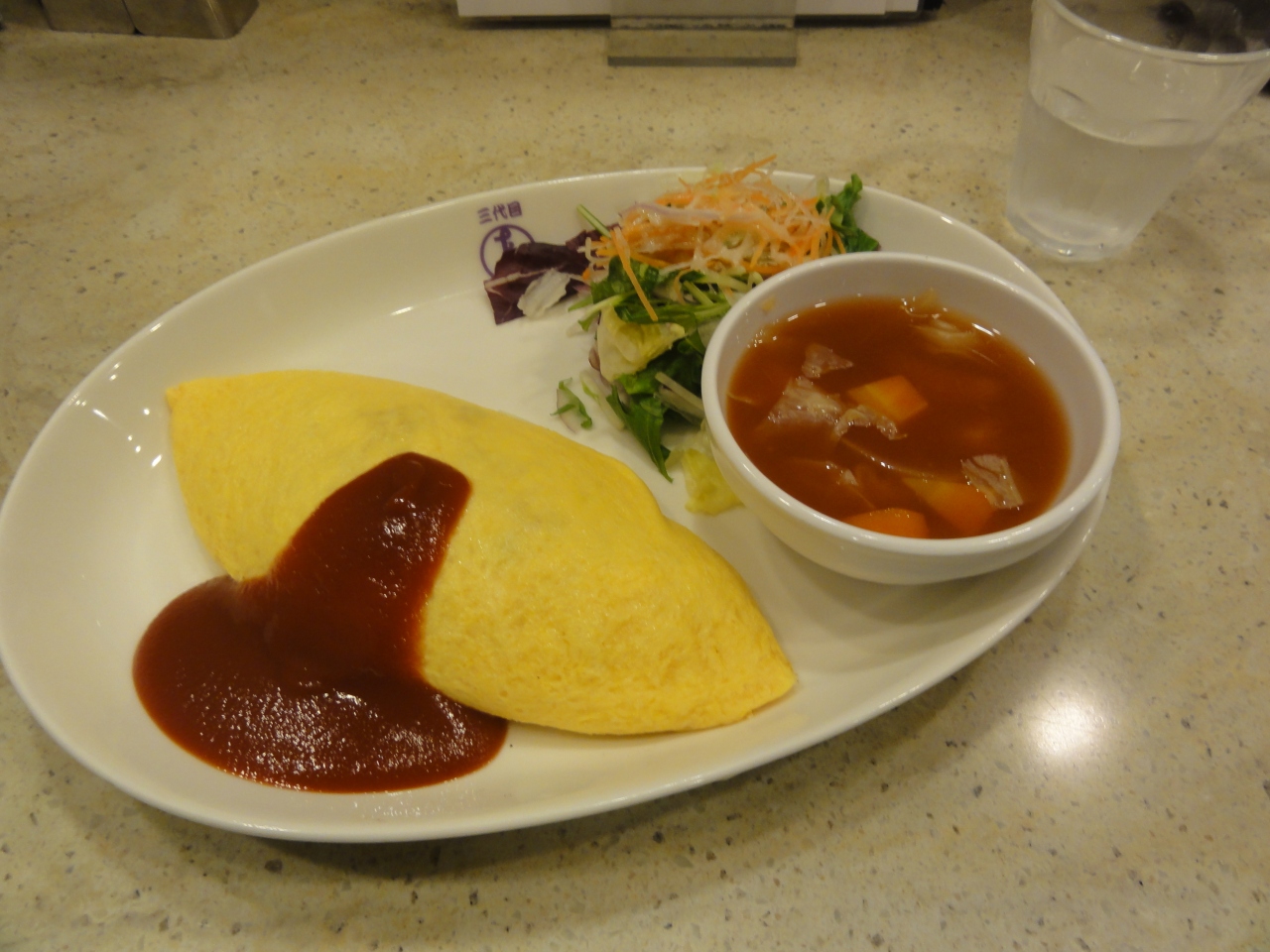 上野駅構内にある有名レストラン、定番ランチはオムライスとボルシチ、サラダでした。ふわっとした焼き上がりの卵はたっぷりで美味しかったですが、オムライスにしては、チキンライスの量がちょっと物足りなかったです。ランチに+¥200でコーヒーも飲めます。