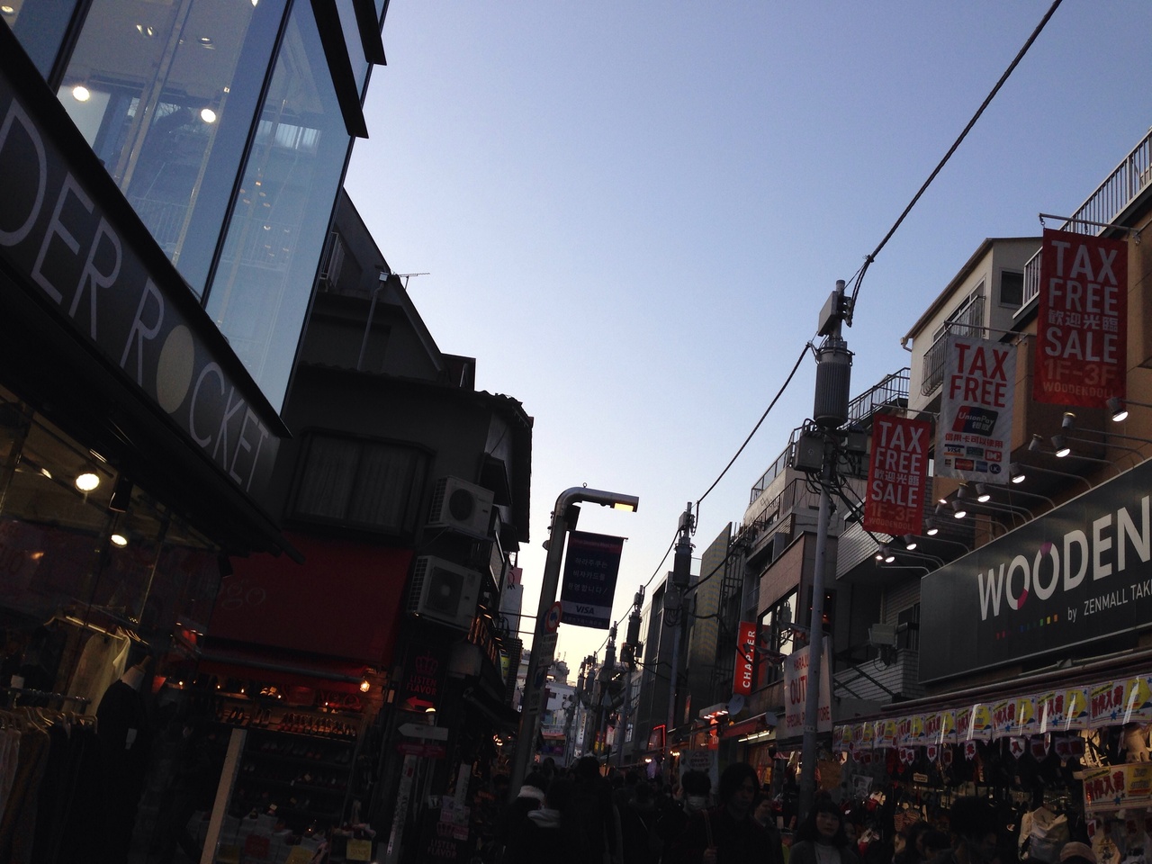 ファッションのお店が中心ですが、昔は無かったドラッグストアがあったりするので ここにも海外観光客増加を感じる。クレープ屋さんをはじめとする立ち食いスイーツが多いのも 竹下通りの特徴。