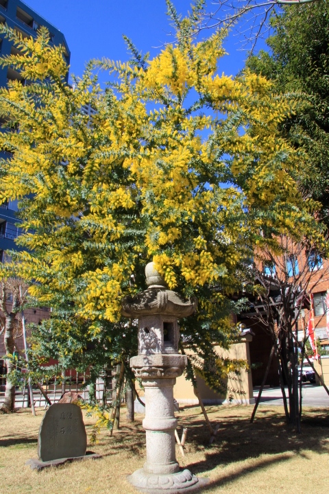 2月の下旬に訪れましたが、四国八十八ヶ所のお遍路巡りが出来るそばに珍しいミモザの黄色の花が綺麗に咲いていました。オーストラリア原産でボンボンの様なとても変わった花です。オーストラリア現産の花は変わった形が多い気がします。実物は初めて見ました。