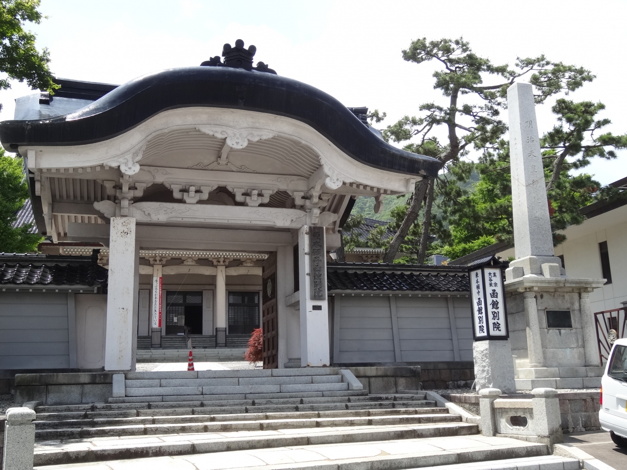 観光には便利な二十間坂にある寺院です。本殿はコンクリート造のなのですが、コンクリートとしては最古でとても立派な本殿です。入口の山門もとても変わった意匠の山門で目を引き素晴らしいですが、函館らしい和洋折衷の雰囲気です。