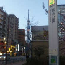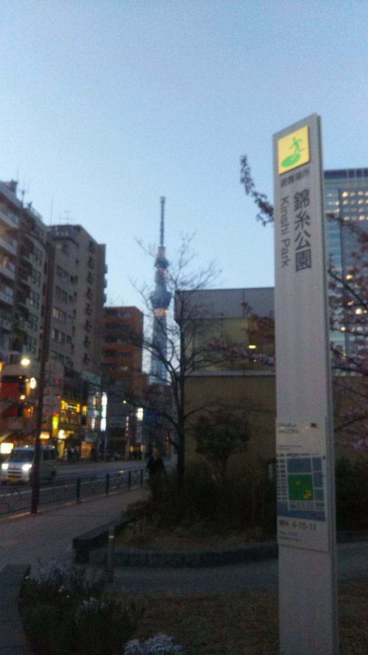錦糸町の駅を出ると交差点の向こうに、うぁ~ピンク色