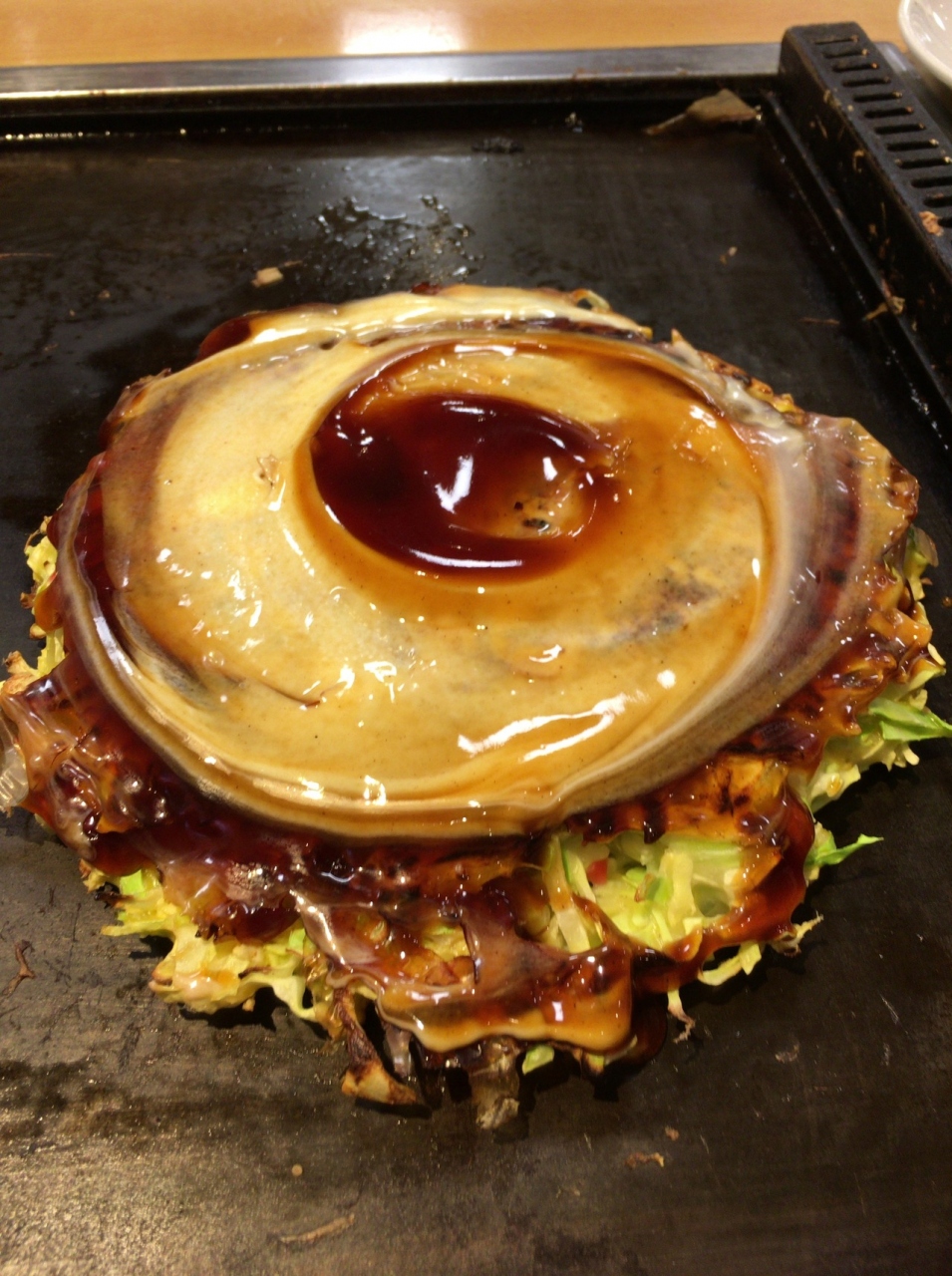 お好み焼き屋さんは色々とシステムがありますが、ここは店員さんが最後まで焼いてくれるけど全て客の鉄板というスタイルです。