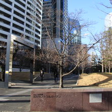 品川インターシティとグランドコモンズの間にある細長い公園の南側が杜の公園と呼ばれています。少し木々が多いですが、品川セントラルガーデンとの境目は判然としません。