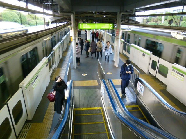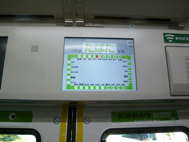 今日は日本の首都東京にやってきました。山手線に乗車します。山手線は大阪で言うと環状線、都心と内回りと外回りでぐるっと回っています。