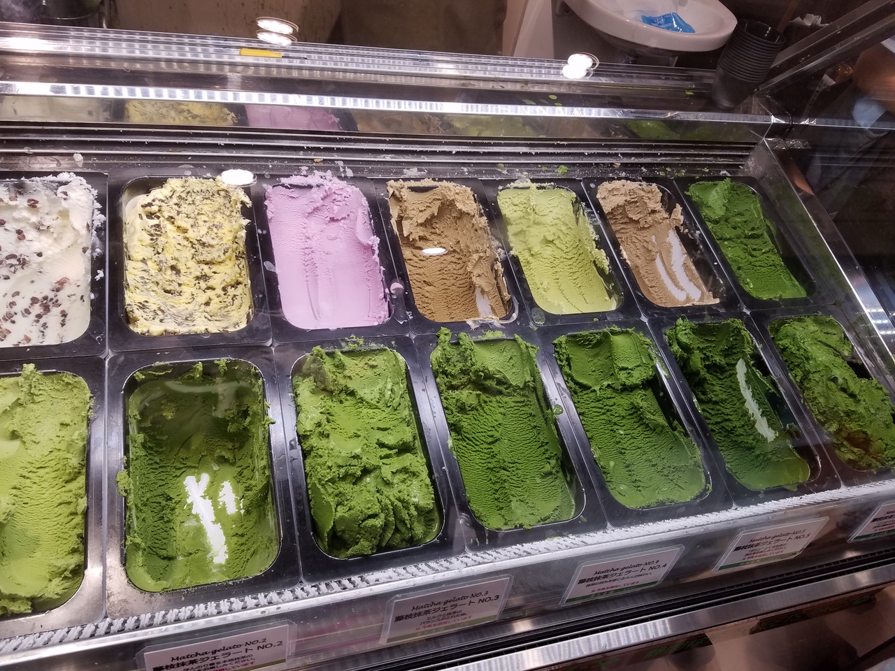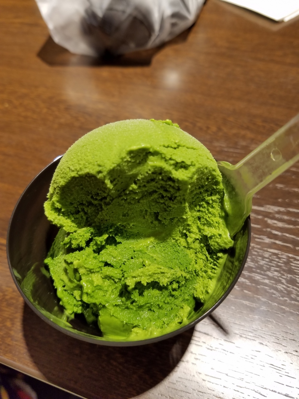 休みの日いくととても混んでいます。まず番号札を渡され、少し離れた場所まで行かされ、番号が呼ばれるまでまっています。順番が来るとまた店まで行き、アイスを選びます。種類が多く7番まで抹茶アイスがあり、7番だと200円高い。5番と7番にしましたが、特に7番出なくてもいいと思います。