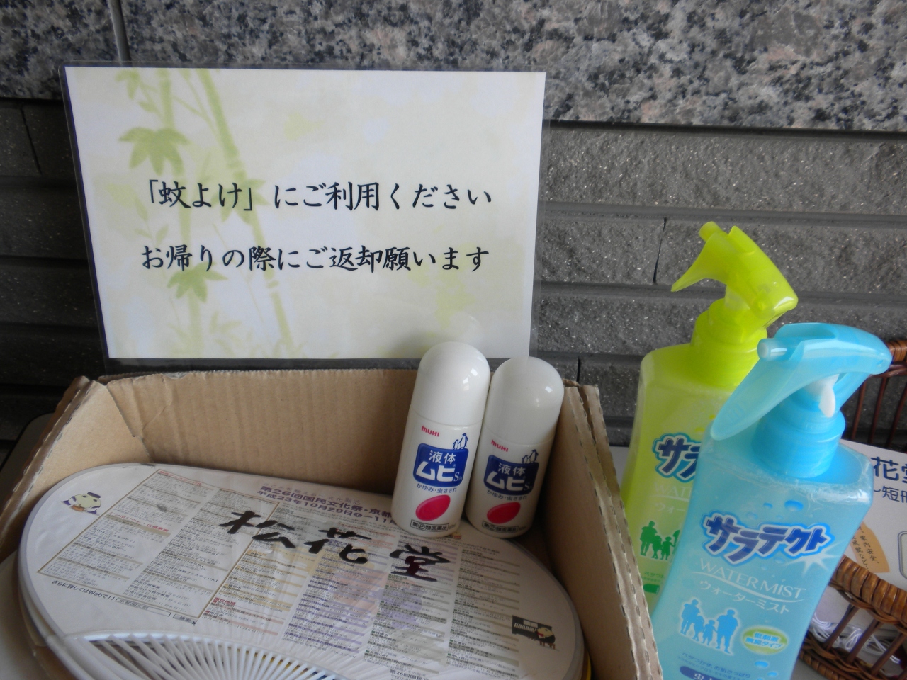 御自由にお使い下さいとうちわと虫除けスプレーが置いてありました。