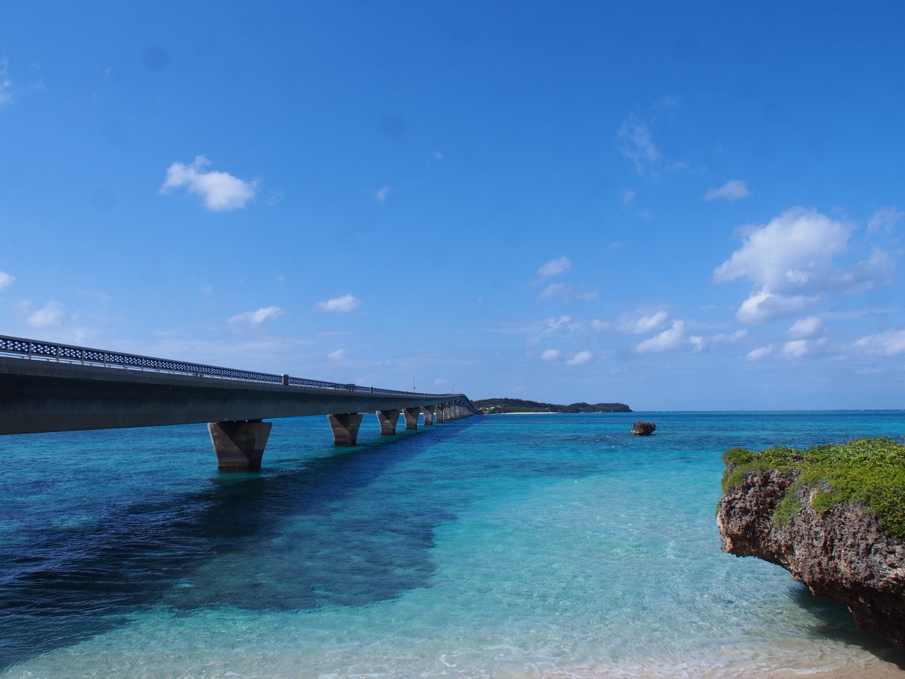 青い空と青い海橋を渡る直前に天気が一気によくなり、