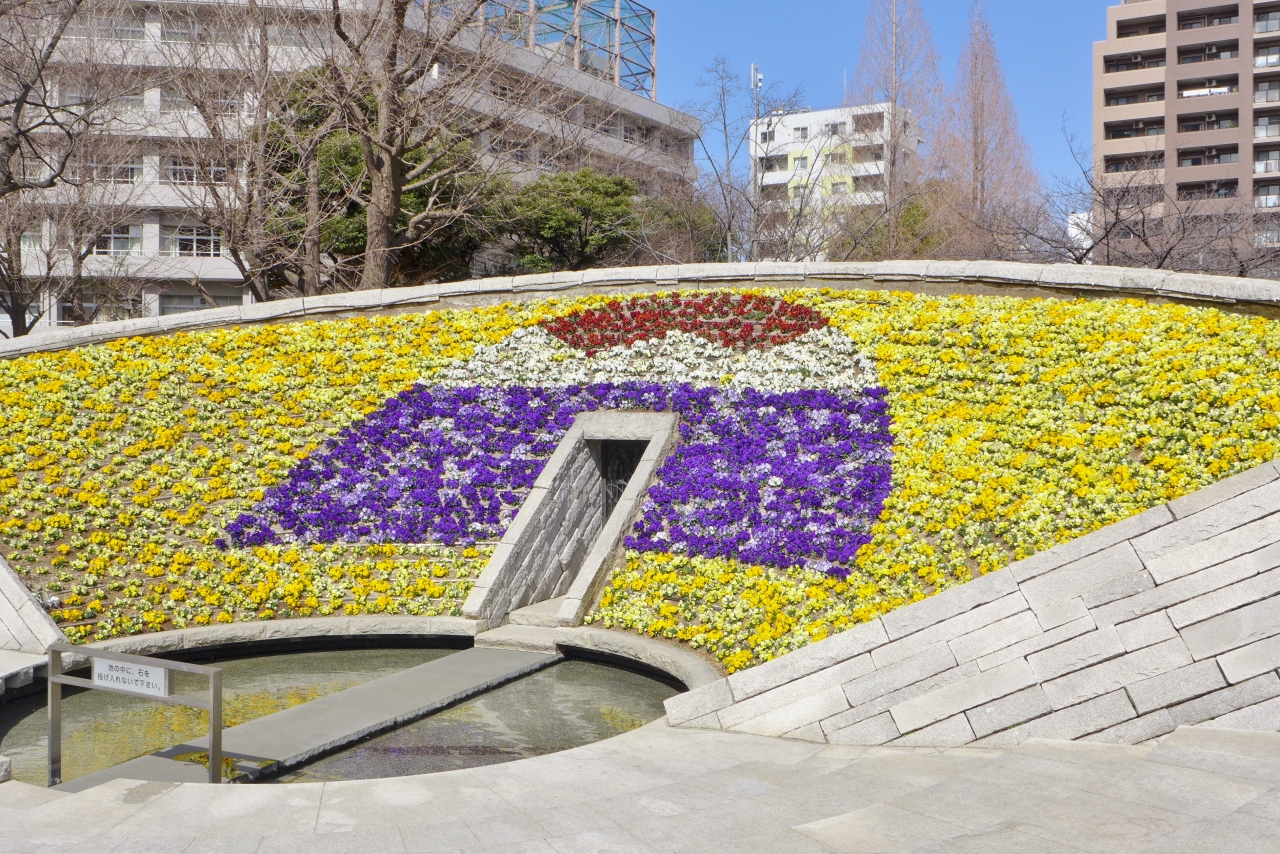 両国にある横網町公園の中央に綺麗な花が植えられた花壇のような大きな祈念碑がありました。