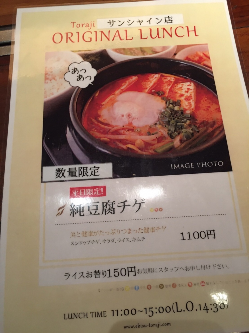 サンシャインにある焼肉で有名なお店です。ランチセットの石焼ビビンバひつまぶしをいただきました。ビビンバはちょうどいい辛さでとても美味しかったです。ランチの値段は1,500円と少しお高めですか納得のお味でした。お腹が空いていたので量は多めでしたがペロリと完食できました。