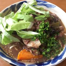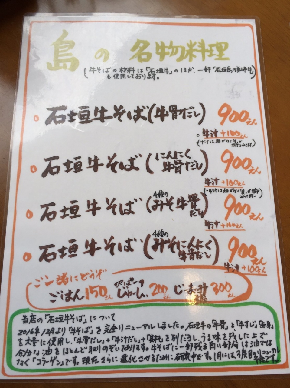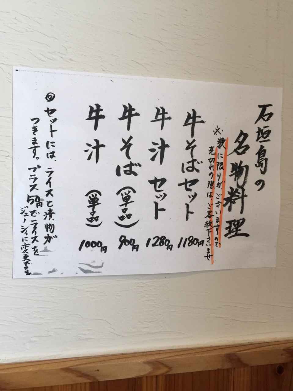 八重山そば、ソーキそば、牛そばといろんなお蕎麦があります!16時まではお寿司も食べれます。メニューが豊富なので迷ってしまいますが、店員さんが1番のオススメと言う牛そばみそ味を食べました!野菜もたっぷり入っていてボリュームあります。ひはつを沢山かけて食べました。スパイシーになります!うす味のどて煮のような感じです。とても美味しかったです。