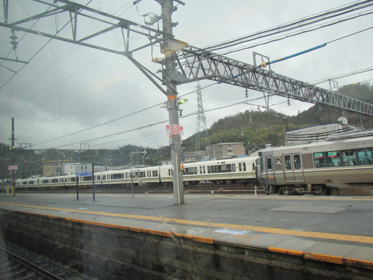 途中、名勝保津峡を通りますが、トロッコ観光路線の方に乗らないと、トンネルの合間に渡る鉄橋から一瞬、渓谷が見える程度で、あっという間に過ぎ去ってしまいます(特に特急列車)。