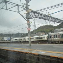 京都駅近くでは、家並みの間を進み、東海道線よりも、京都の街中を走っている実感があります。