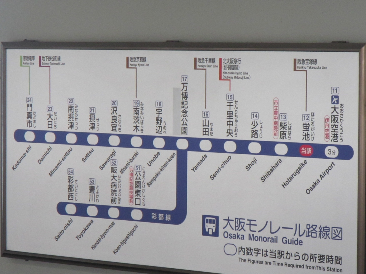 大阪駅からだと、阪急梅田駅に移動して蛍池駅まで阪急を使い、そこからモノレールで1駅のみの利用です。