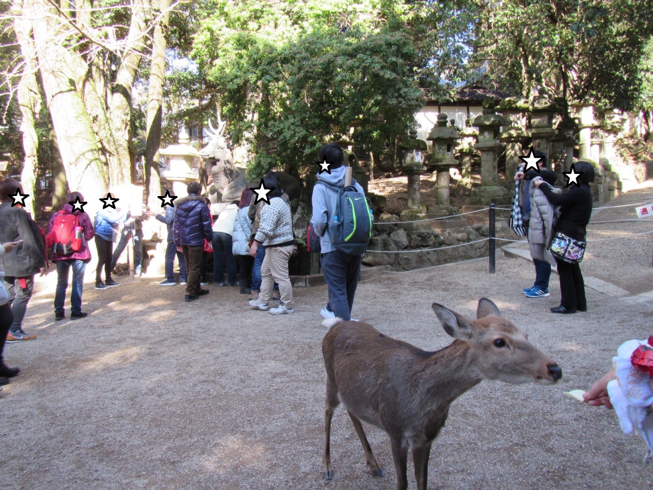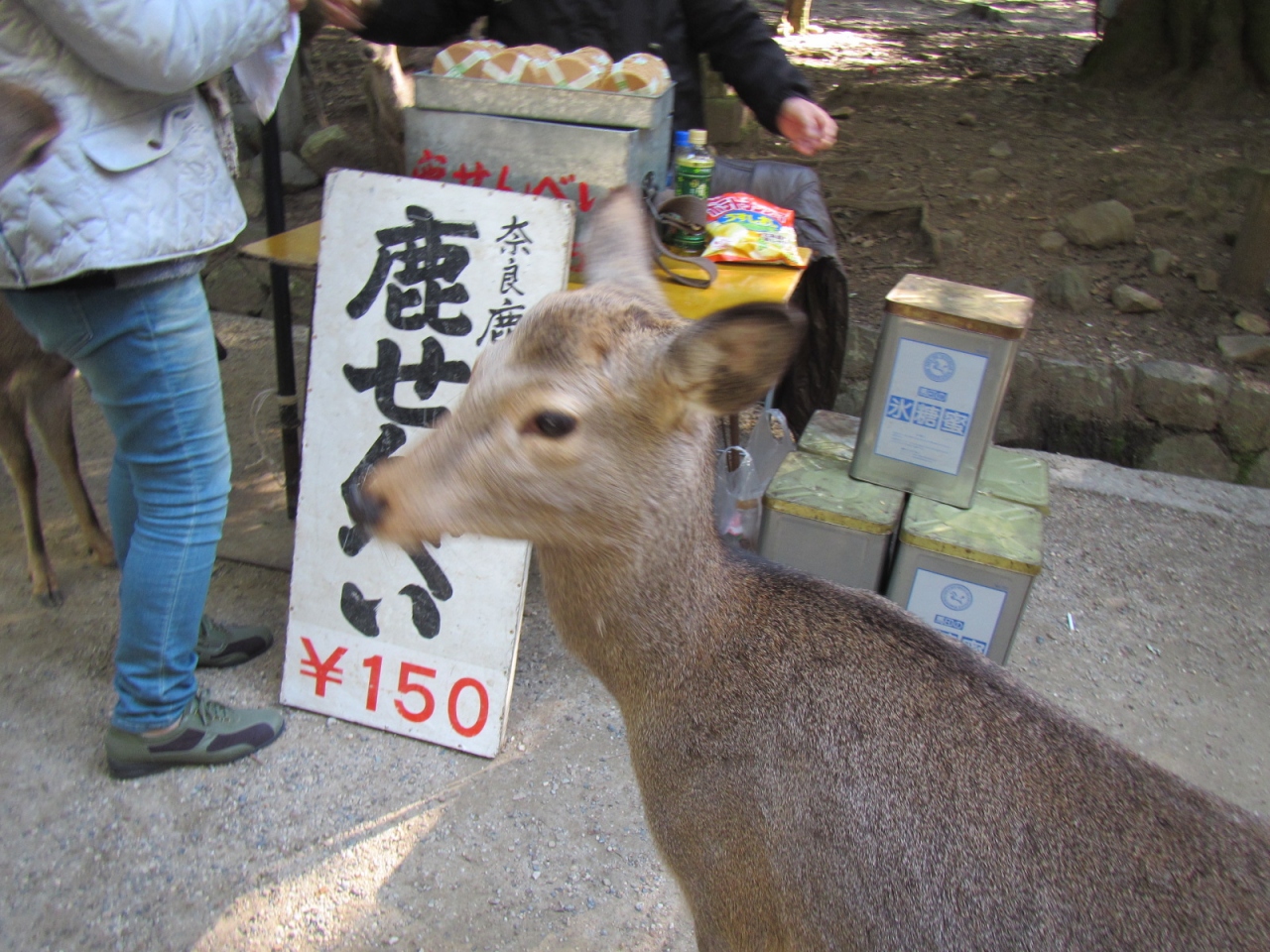 一方、所々で安く(¥150円だった)鹿せんべいを売っているので、こちらをあげると美味しそうに食べます。