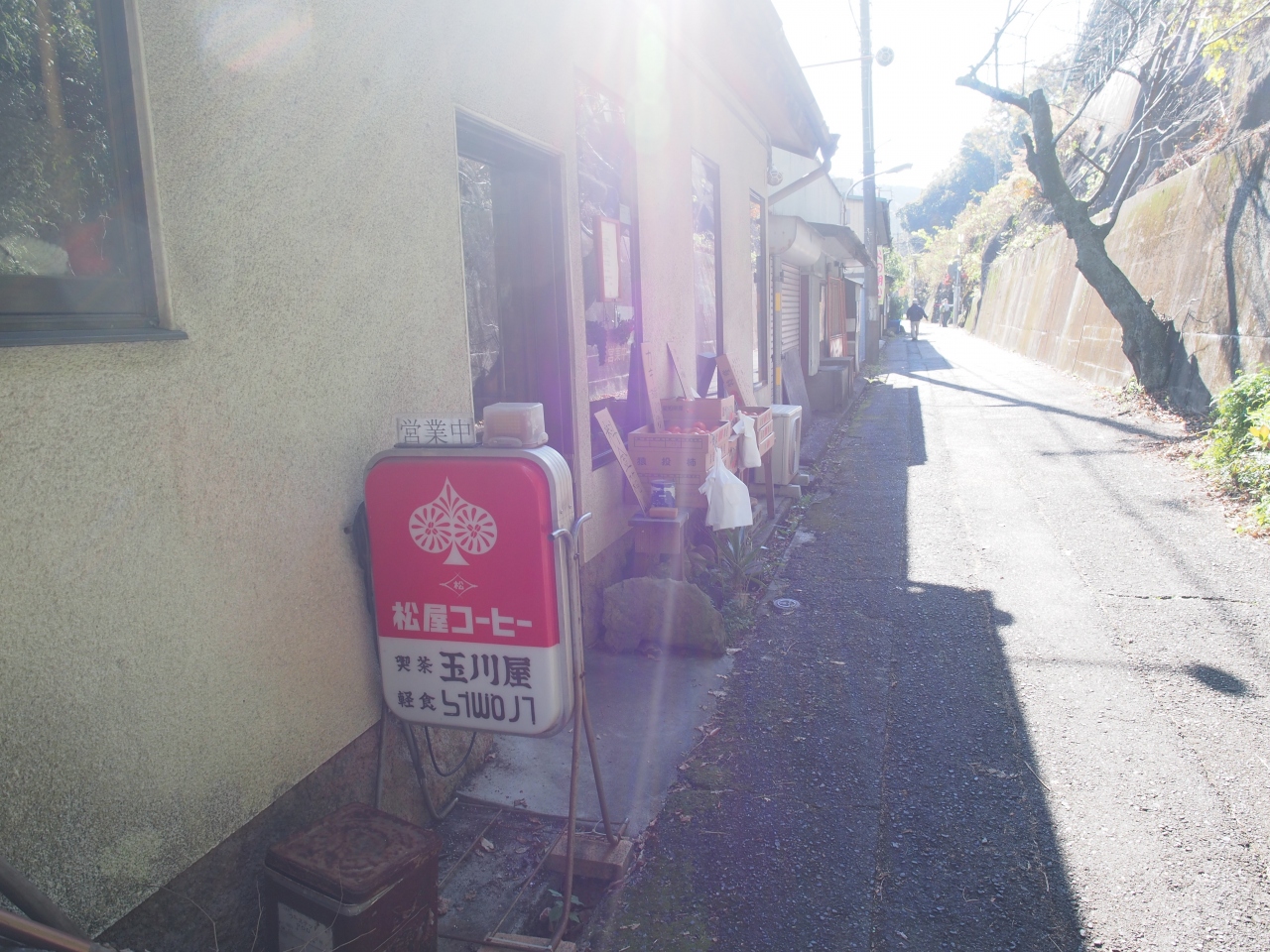 定光寺駅からすぐのところ、愛岐トンネルとは逆方向に1分ほど歩いた場所にある小さなお店です。このあたり、他にお店が何もないので立ち寄るとしたら自動的にこの玉川屋さんになります。お店の前でみかんが売られていたので、散歩のおやつにいただきました。