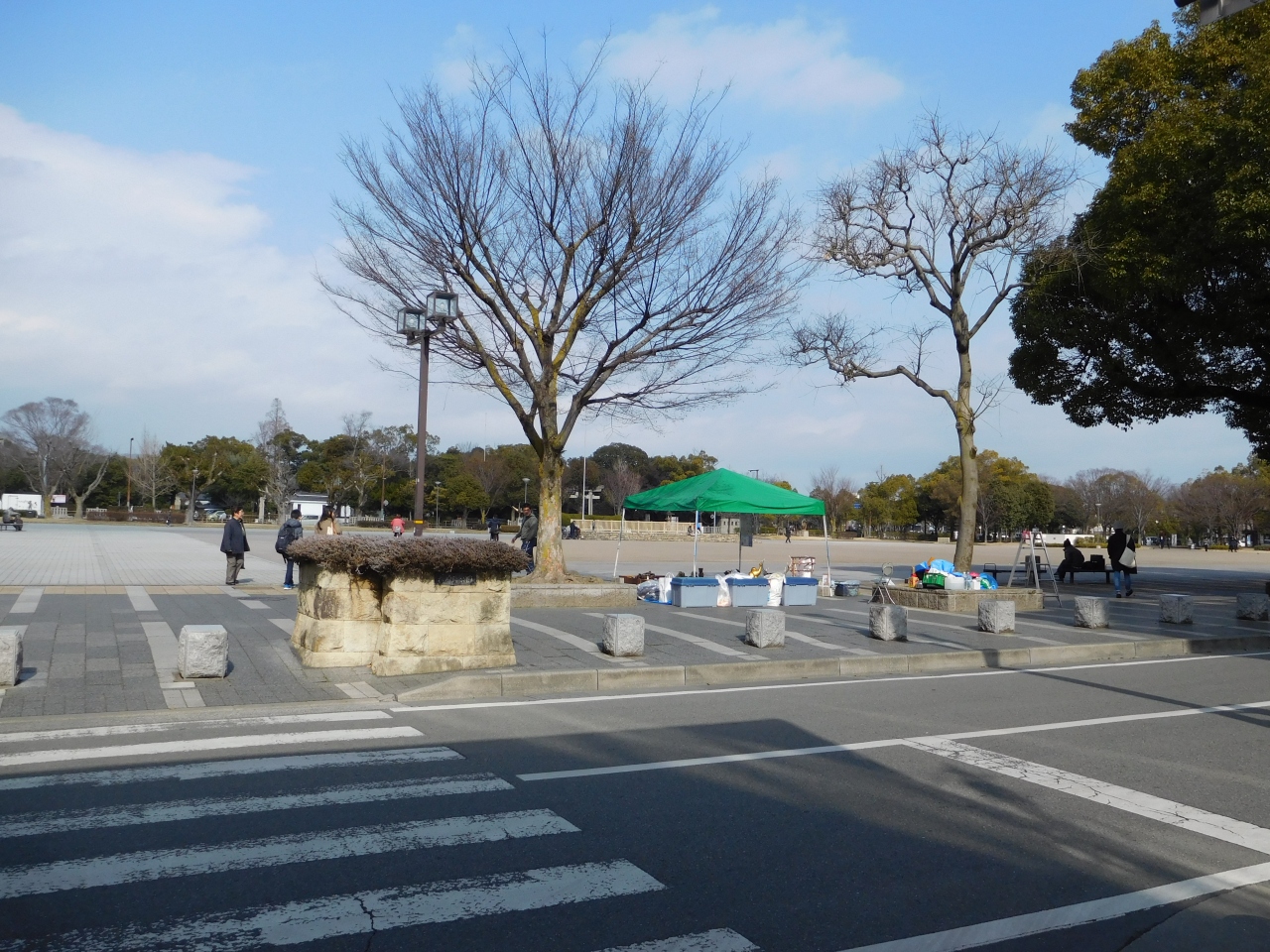 姫路城 大手門の手前側(南側)に位置する公園です。公園というと、緑があったりベンチがあったりしますが、広々とした何もない空間が広がっていて、どちらかと言うと、広場という印象でした。鳩が沢山集まっていたり、大手前通りの近くでは、フリーマーケットのような、お店が出店していたりもしました。イーグレひめじの屋上から見た時は、姫路城前にシンプルな空間が広がっていたので、写真を撮るには良かったです。