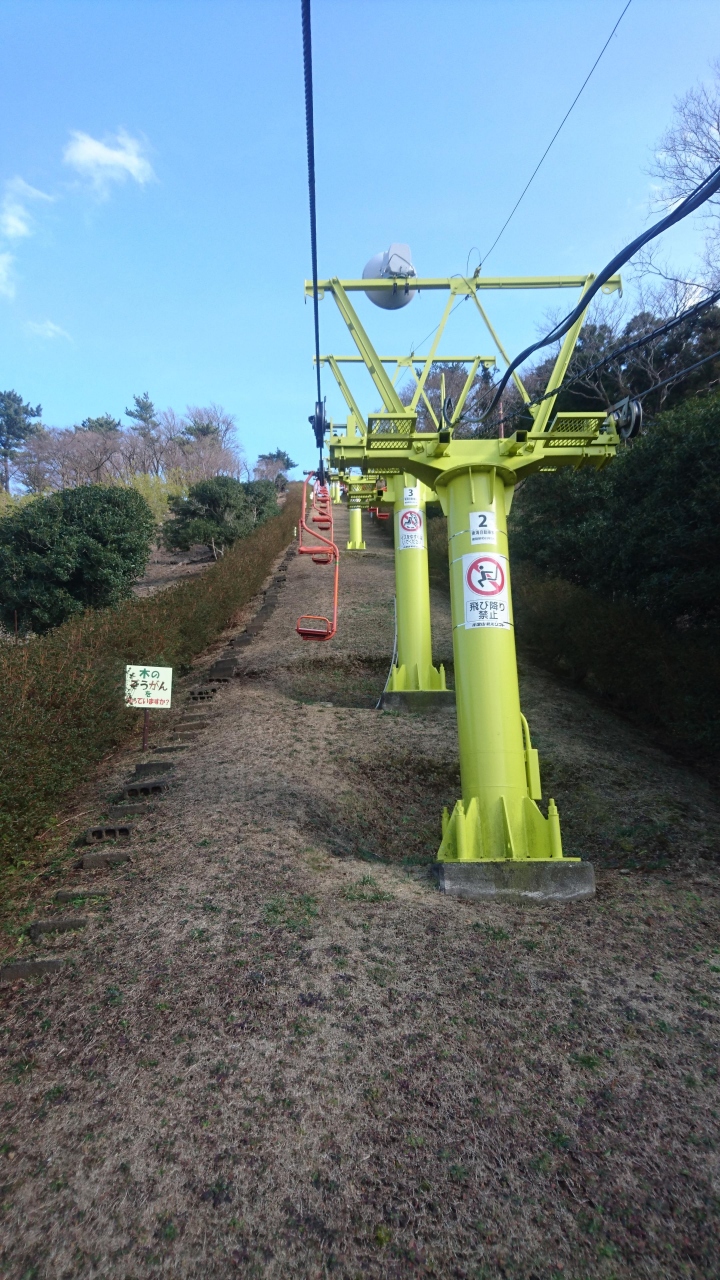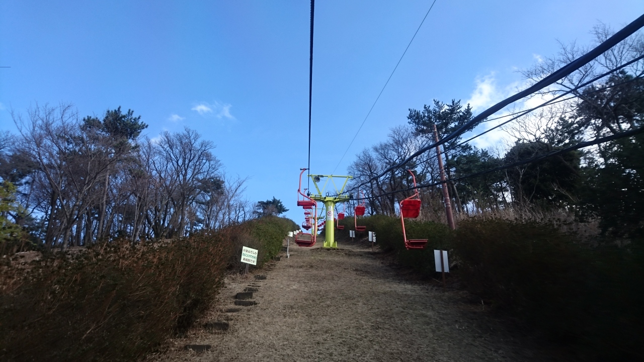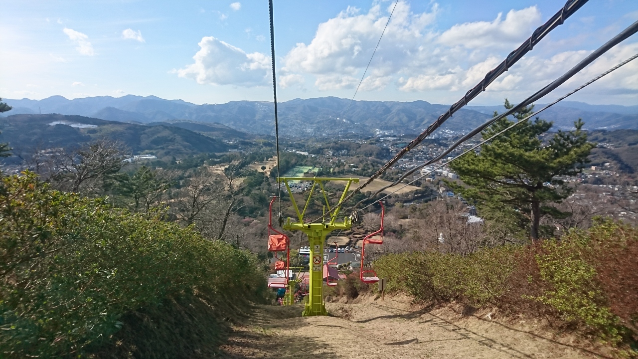 ツアーの昼食が小室山レストハウスだったので、食後にリフトに乗った。チケットは1階の店内の乗り場付近の自販機で購入。大人往復470円。チケットは行き(登り)は見せない。帰り(下り)に箱に入れる。リフト乗り場には年配の男性が乗車の補助をしてくれる。