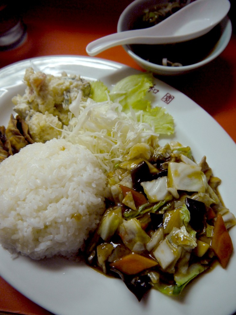 典型的な中華料理店のサービスランチ(名称は、店によって異なるが)。