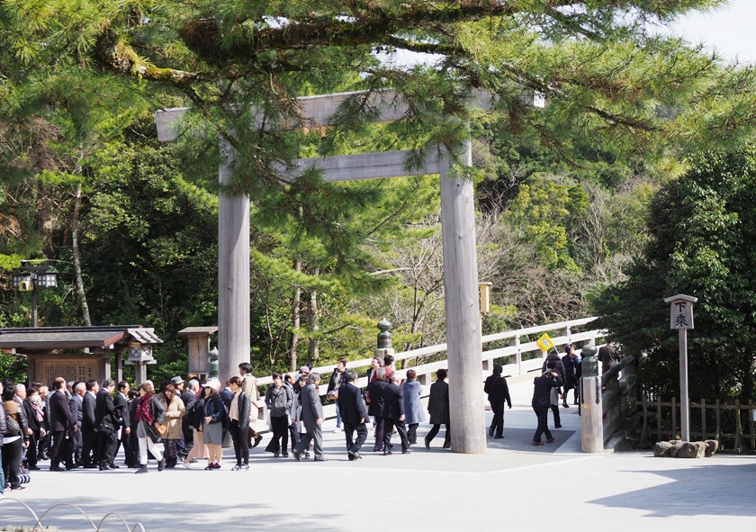 宇治橋に一歩足を踏み入れた途端、橋板の分厚さや作りの巧みさを靴底に感じ「ただものではない」重厚さに心打たれその時点から厳かな気分になりました。庭園の松の見事さ、常にスタッフが清掃・管理に動いています。野鳥も観察できました。