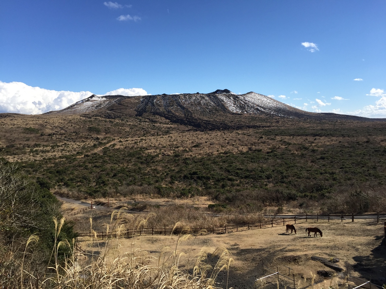 駐車場から近くて便利でした。三原山を一望できます。記念碑があり三原山をバックに写真を撮りました。乗馬も出来るようで登山をされるかたはここから徒歩で三原山を目指して歩いていました。反対側には伊豆半島の大室山や富士山も見えてきれいでした。