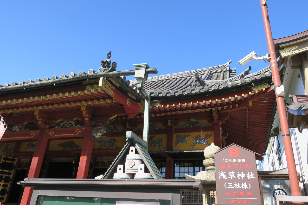 馬道通りの台東区民会館のあたりから二天門を通ってはいると右側が浅草神社、通称三者さまです。