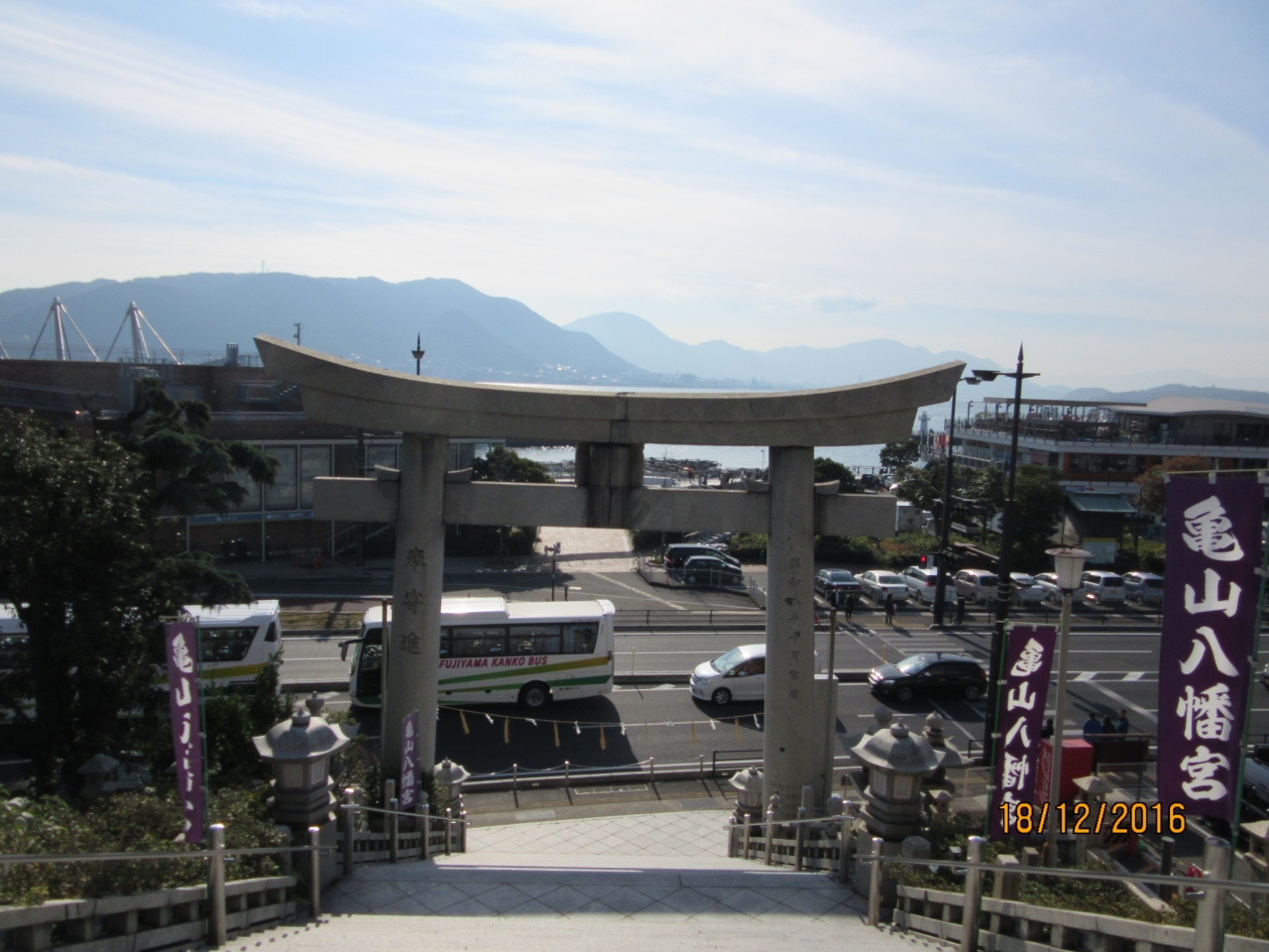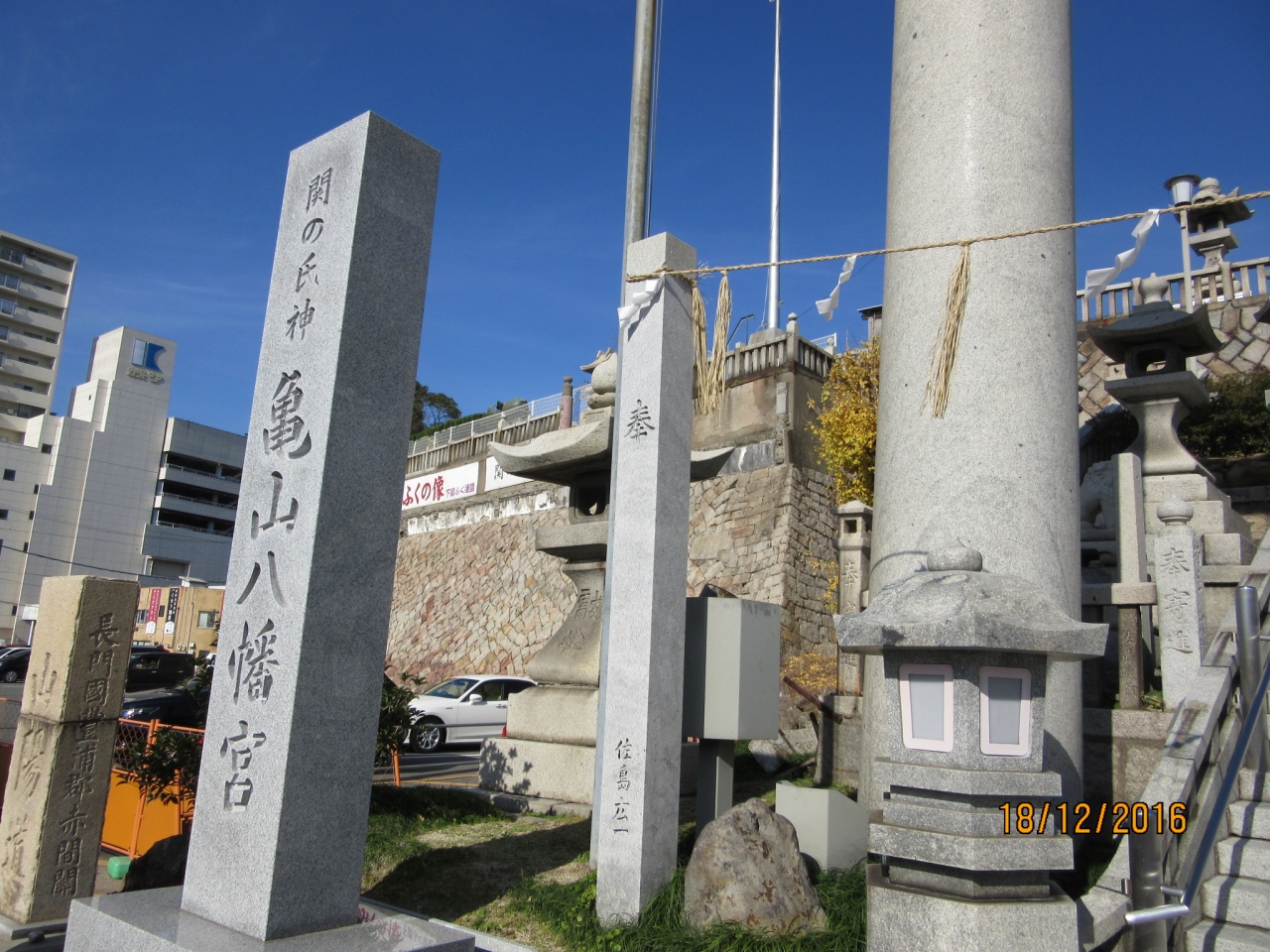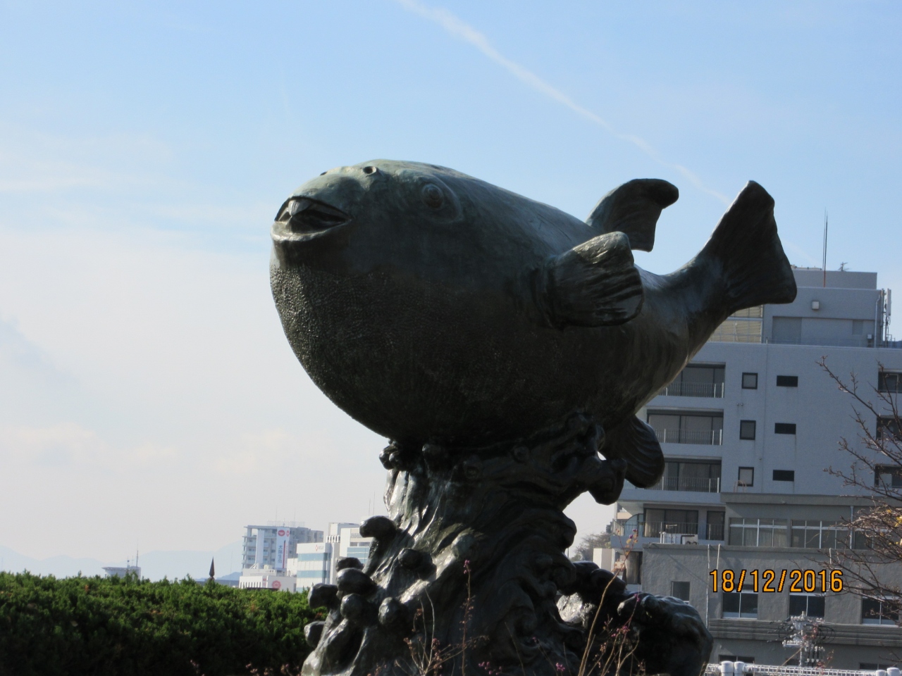 下関駅からバスで【唐戸】下車。唐戸市場を見て石段を上る。境内には【林芙美子文学碑】【亀山砲台跡」などの史跡があるが、何といっても見どころは【日本一のフグの銅像】。こっけいな姿で海に面して建っていますが、見応えがありました。さすがにフグの街【下関】と感心した。